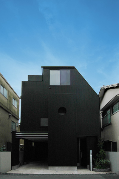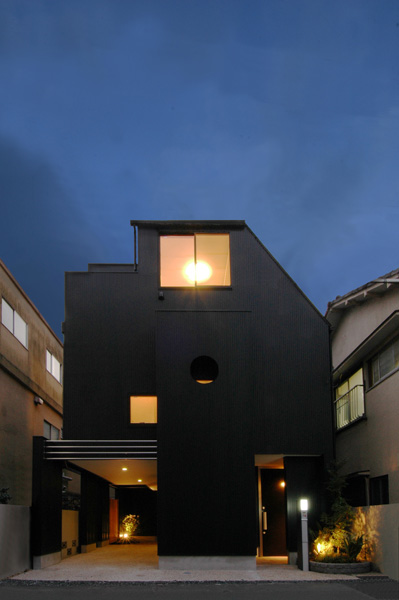 外観はプライバシーを守る為に開口部を少なくし重厚感を前面に出し存在感をアピールした。外壁で使用しているガルスパンは耐久性、耐熱性にも優れデザインだけではなく省エネ、メンテナンスなど実用面に於いても優れている。