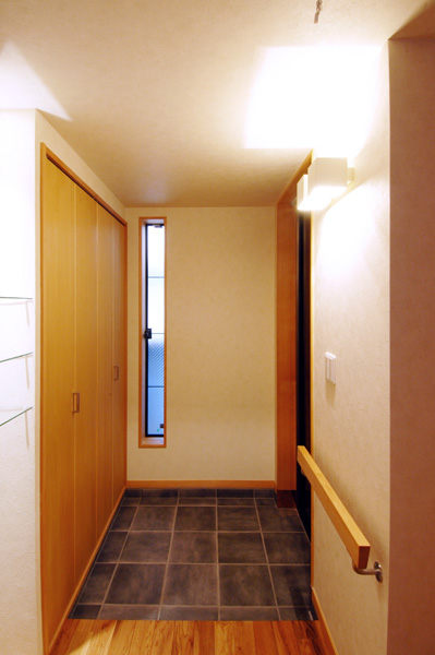 内部は開放的に(吹き抜け)など大空間を確保し自然素材(床をナラ無垢材・畳コーナーなど)を使用し住むことにステータスと安らぎを両立させた。その他床暖房・システムキッチンなど実用面でも使いやすさやメンテナンスなどに優れた仕様にしている。