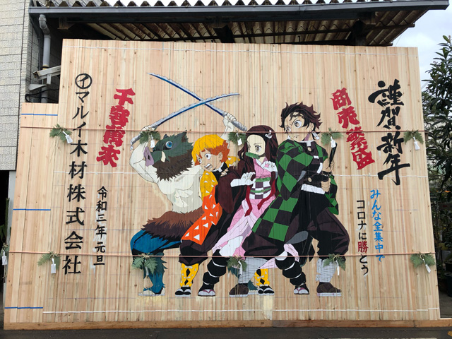 事務所前に立てる飾り絵は、昨年大ヒットしたアニメーションを